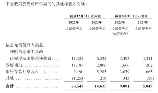 其中,其他净收入中,降幅最为明显的是政府补助,其分别为1118.5万、280.6万、20.2万。在2023年前八个月的时间里,该金额为166.6万,2024年同期同比下滑87.88%。此外,银行存款利息收入也迅速减少,其分别为219.0万、528.5万、66.5万。在2023年前八个月的时间里,该金额为367.9万,2024年同期同比下滑81.92%。
